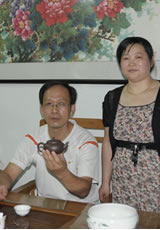 王国瑾号天涯客1969年生于陶都宜兴丁蜀镇中原村(现紫砂村)。自学校毕业至今一直致力于紫砂陶文化和茶文化的推广,足迹遍布神州大地,在全国各地具有较高的知名度。在游历名山大川的过程中,不断提高自身的文化素质和艺术修养,把许多对大自然的领悟运用到紫砂陶的创作之中,作品受到广大朋友的赞赏。戴秀娟1969年生于陶都宜兴丁蜀前墅村,在龙窑边长大的她,对紫砂陶有着衷心的热爱,学校毕业后一直从事紫砂壶的制作,是杰出的实力派创作者,擅长各种器形的紫砂壶制作,作品遍及世界各地,受到收藏者的好评。