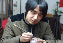 马燕简介:男,宜兴人,1979年生,笔名溪石,著名国家级刻陶师,国家级助理工艺美术师,2004年毕业于北京联合大学艺术设计系。虽然自小双耳失聪,听不到世界美妙的声音,但坚强乐观,从小酷爱绘画,并在刻陶技法上探索和创造了自己的风格。