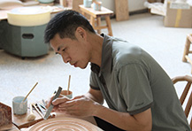 叶小春,1964年2月出生,浙江省工艺美术大师。陶瓷工艺美术师叶小春现年38岁,龙泉上垟人,出生于青瓷世家。其父叶时金为高级工艺美术师,一直跟随祖辈,以制作青瓷为生,从事青瓷技艺已达50多年,配制胎釉是他的特长。