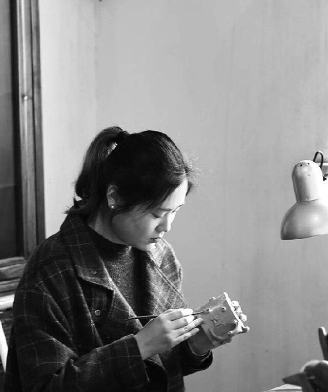 潘晨玲简介:女,宜兴人,1992年10月生,国家级助理工艺美术师,2015年毕业于南京师范大学。太姥爷是民国艺人冯桂林,从小聆听外婆对太姥爷的追思,自幼受紫砂氛围的熏陶。因对紫砂情有独钟,致力成为优秀的紫砂艺人。经师父陈祖桥、赵信军两位师父的悉心教导和自己的努力,技艺大夸度提升,花货功底扎实。2018年第一次参加全手工大赛并获得优秀奖。
