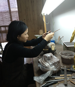 方贞简介:女,客家人,1989年出生,2013年国家级助理工艺美术师。2012年毕业于闽江学院艺术系雕塑艺术设计专业,获学士学位,师从胡汉平先生。同年毕业来宜兴学习传统紫砂工艺。2013年至今一直致力于探索传统紫砂雕塑与现代人体雕塑的结合。