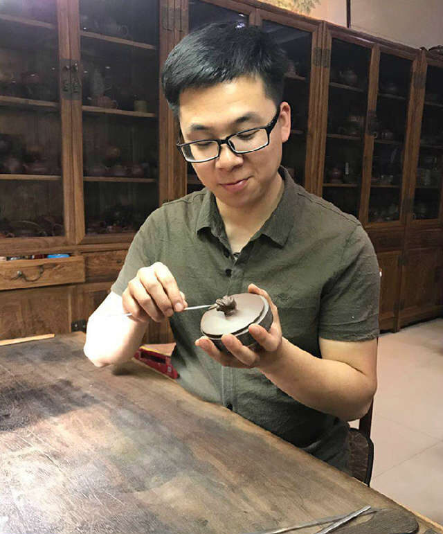 苏立晨简介:男,宜兴人,1992年生,国家级助理工艺美术师,自幼酷爱紫砂艺术,2014年拜高级工艺美术师陈红梅为师,受到严格的训练和指导,经自身刻苦努力,勤奋好学,同时凭借自身天赋和悟性,技艺不断成熟和完善。