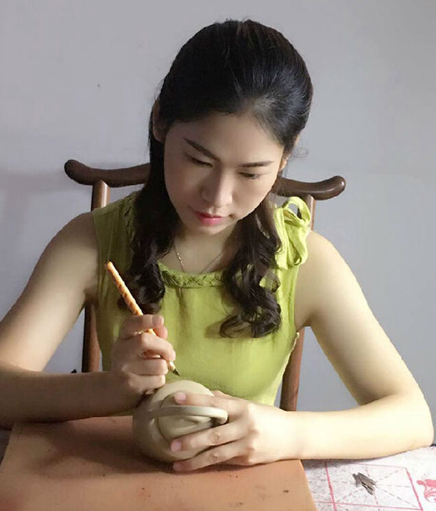 谢玲娇简介:女,宜兴人,1988年生,国家级助理工艺美术师,从小就对陶艺产生浓厚的兴趣。学业结束后跟随师父徐雄先生学习技艺,自己的勤奋努力加上祖辈有利的陶艺制作与陶刻优势,在行业内早有突出的表现,之后拜在江苏省工艺美术大师朱建伟先生的门下,经大师悉心指导,更是受益颇丰,技艺日渐长进。