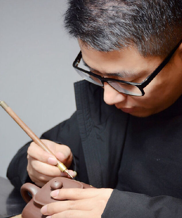 潘晨简介:男,宜兴人,1987年生,国家级助理工艺美术师,师从著名泥绘陶艺家,高级工艺美术师张志清老师学习紫砂泥绘技艺,得其真传,在师承师傅风格的同时,又融入自己的创作理念,作品布局精妙,泥绘用色浓淡相宜,山水花鸟细腻逼真,让人如临诗词古人之境。