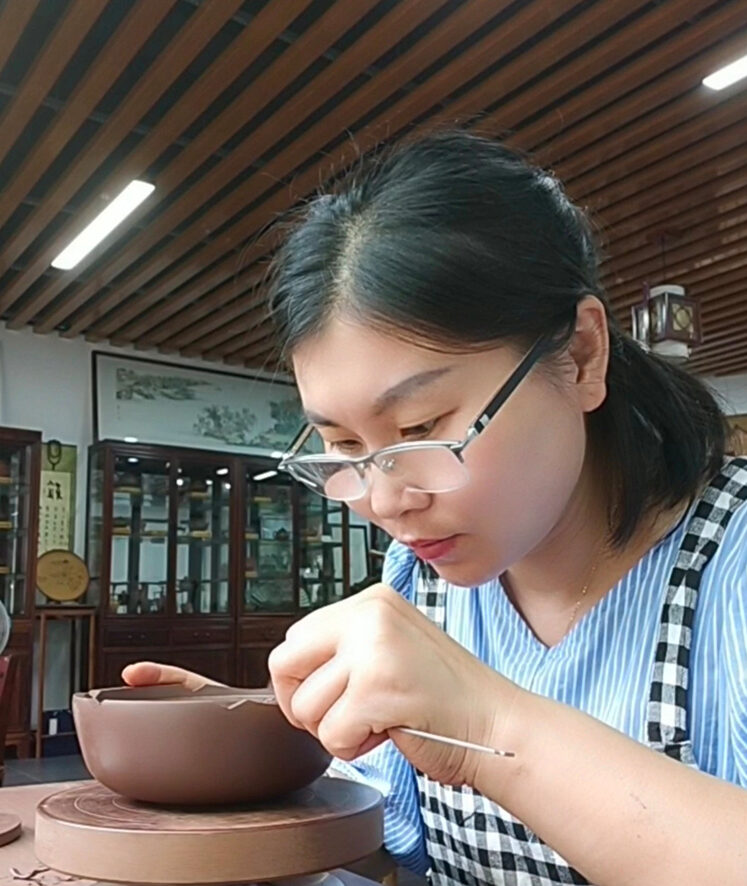 毛旭娅简介:女,宜兴人,1981年生,国家级助理工艺美术师,自幼酷爱紫砂艺术,耳濡目染,学校毕业后跟紫砂前辈学习紫砂壶的制作与设计。多年的刻苦学习,加之受到诸多工艺美术大师的指点,开拓了视野,练就了扎实的功底。多次参加工艺美术各类陶艺研修班培训,在艺术鉴赏、审美等方面得到了系统的学习和提高。其作品构思严谨,创意独特,高超的工艺技术和准确的艺术表现力,受到国内外爱壶者和专家的高度赞美。