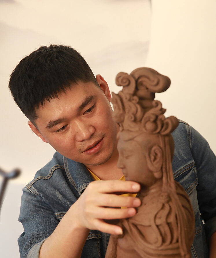 郭栋祥简介:男,江西人,1987年生,国家级助理工艺美术师,2006年进景德镇雕塑瓷厂 学习瓷雕创作 。经名师推荐至宜兴发展学习紫砂雕塑。2014年全手工大赛二等奖,2014年《东坡赏壶》全手工制陶大赛二等奖。2012-2015年进南京师范大学进修。