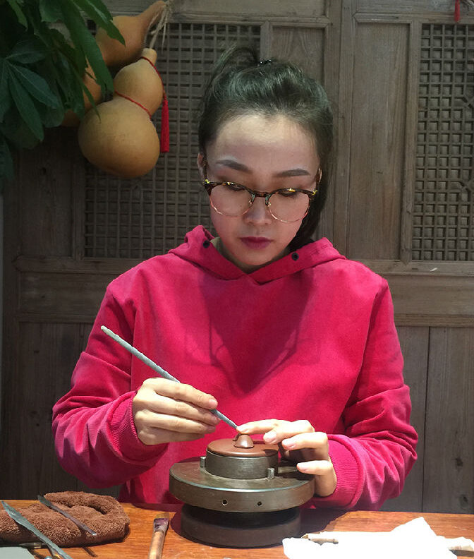 金莉娜简介:女,宜兴人,1989年生,国家级助理工艺美术师,从小随高级工艺美术师袁立新(母亲)学艺,深得爷爷(何道洪大师)及母亲教诲并亲授技艺。对紫砂的了解比同龄人有更深的领悟,对于造型的比例,构建布局手法更为细腻,其作品古韵之中含新风,线条简洁,气韵鲜明。作品多次参加比赛获得优秀的成绩,深得评委喜爱和紫砂爱好者追捧,是当下最具有升值空间的年轻辈艺人。