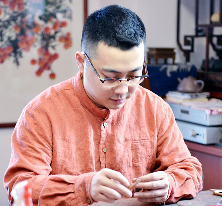 韦佳豪简介:男,宜兴人,1992年生,国家级助理工艺美术师,毕业于南京林业大学,大学期间荣获徐悲鸿奖学金。2013在大学期间开始随母亲唐朝霞学习制壶技艺。2019年入云水书院并拜赵辉为师学习陶刻,同年加入宜兴市书法院第五届书法高研班跟随何勇老师学习书法。2020年入千山学馆与孔方老师学习国画。