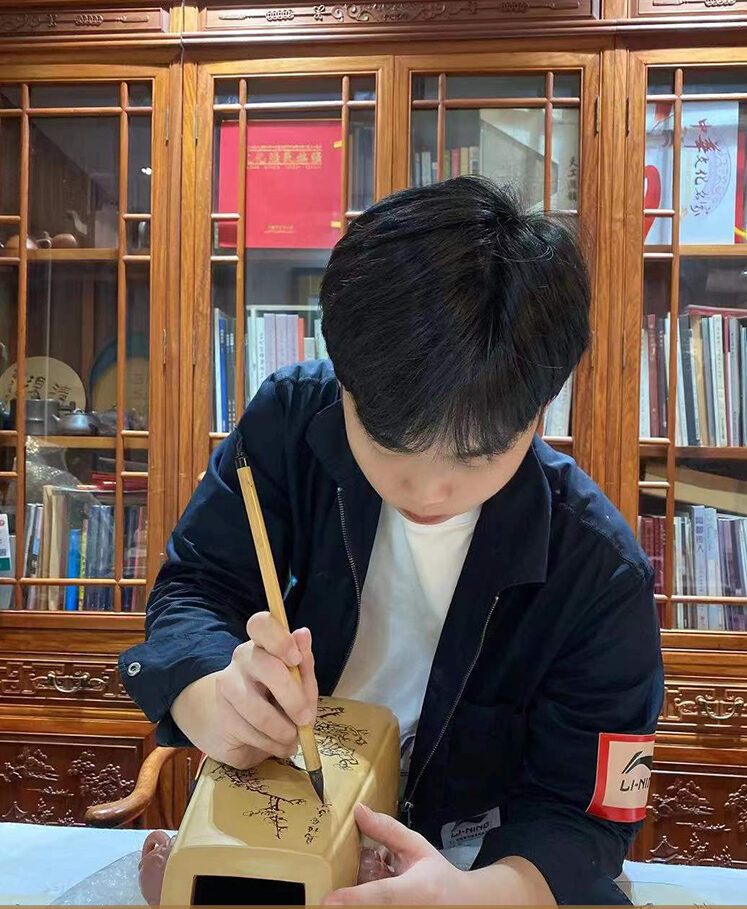 赵辉简介:男,宜兴人,字一心,1999年生,国家级助理工艺美术师,毕业于苏州大学(产品设计)(父亲赵洪福正高级工艺美术师),自幼受紫砂艺术熏陶,对紫砂艺术情有独钟,十岁跟随父亲学习紫砂制作,后又师从木石(周伯其)及刘世涛老师学习书法及陶刻艺术。2019至2021年在中国美术学院(国画系)进修深造。