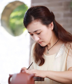曹洁简介:女,宜兴人,1975年生,国家级高级工艺美术师,1991年进紫砂工艺厂,师承研究员级高级工艺美术师庄玉林老师学艺,同时受中国工艺美术大师顾绍培先生精心辅导,1994年至今长期受高级工艺美术师施小马老师的悉心教导,创作颇丰,虚心勤奋,接受能力强,制作技艺因而有了长足进步。1993年被选送进中央工艺美术学院陶瓷造型设计专业学习,作品《异星》被该院收藏,创作理念日益长进。1998年进中国宜兴陶瓷博物馆古陶研究所工作。