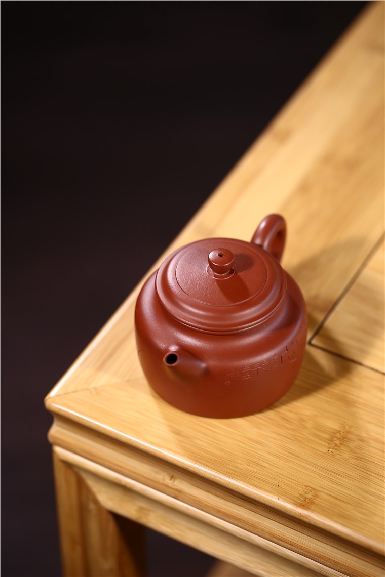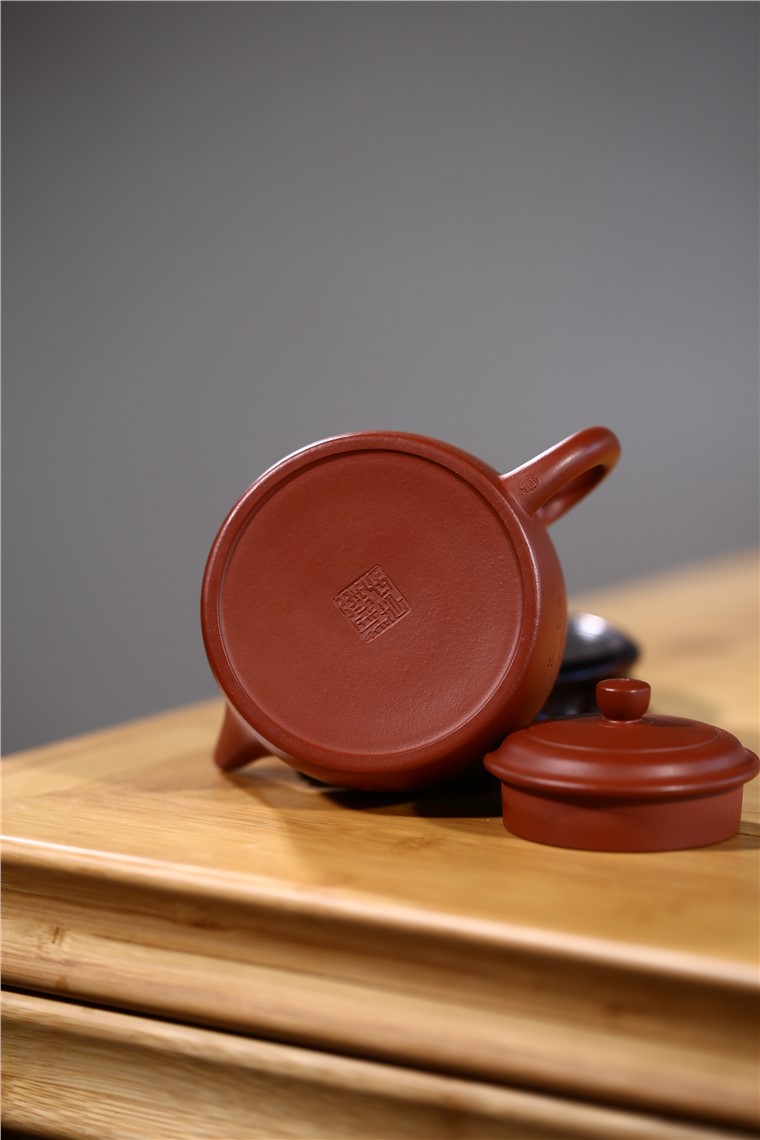 原矿朱泥,胎骨坚硬而沉实,色泽朱红略泛桔光,温润透明质感之佳,与清中期好的朱泥无异;大器无法烧成,小品烧成后穀皱纹隐现,颇具古代朱泥风华。 赵庄的朱泥原矿灰、白、带黄棕色,呈片状结构;本原矿由于泥性较重,故较不易成砂,需采自嫩泥矿中较坚硬的部份,而制陶者为了求得更精细的泥料,将红泥先洗泥沉淀,得到约140目到180目细孔的朱泥胎土,制成细如滑脂的朱泥壶。朱泥的土质成份,其特色是含有极高的氧化铁,约在14%到18%之间,这是朱泥烧成后壶身成为红色的主要原因。由于朱泥的泥性甚娇,成型工艺难度亦高,而朱泥由生坯至烧成,因收缩率高达30%至40%,故一般成品良率约仅七成。 温馨提醒:朱泥制壶使用前须先温壶。