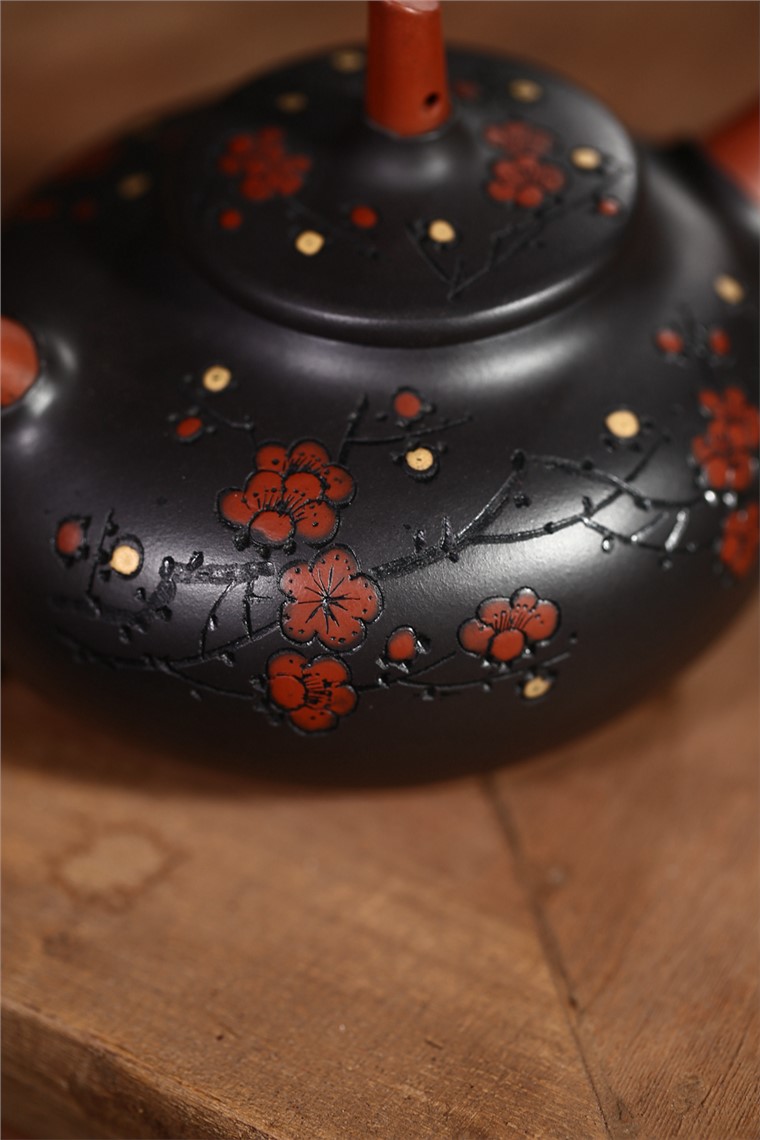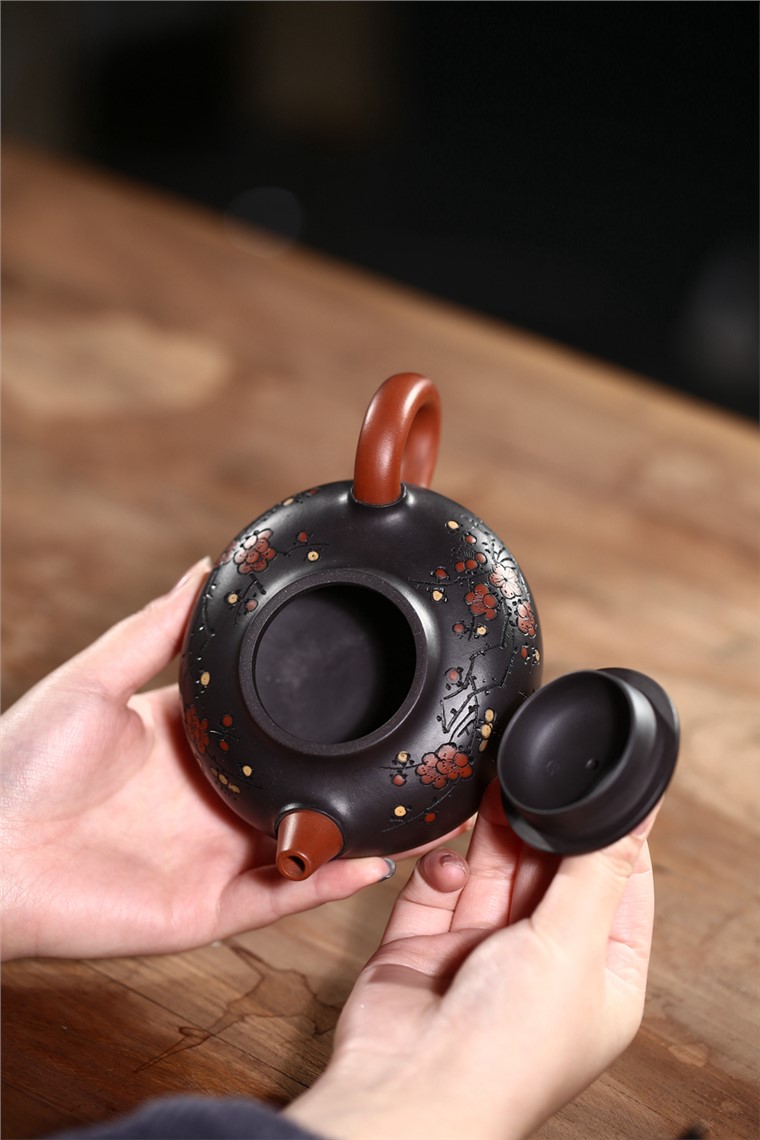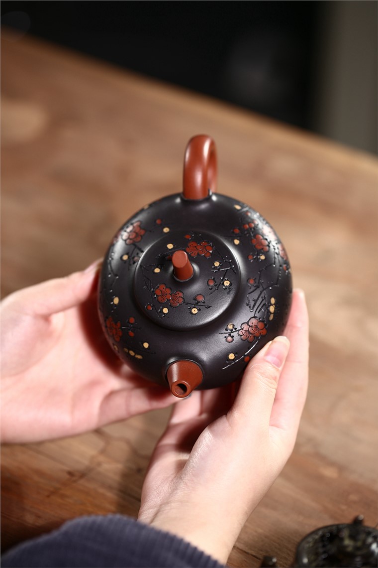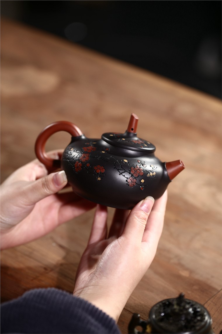 原矿黑泥,其色如墨,似黑夜浩瀚天际,深不可测。神秘静寂、引人神往,故历来深受世人钟爱。为早期常见通用之泥料,因矿脉里铁质成份较高,日久使用,深获早期壶识者深爱、赞赏,养壶者甚是喜爱。新壶初用砂土气重,茶汤略现砂气,经使用壶身展现出灰黑,泡茶数日则如墨黑,泡茶好喝。