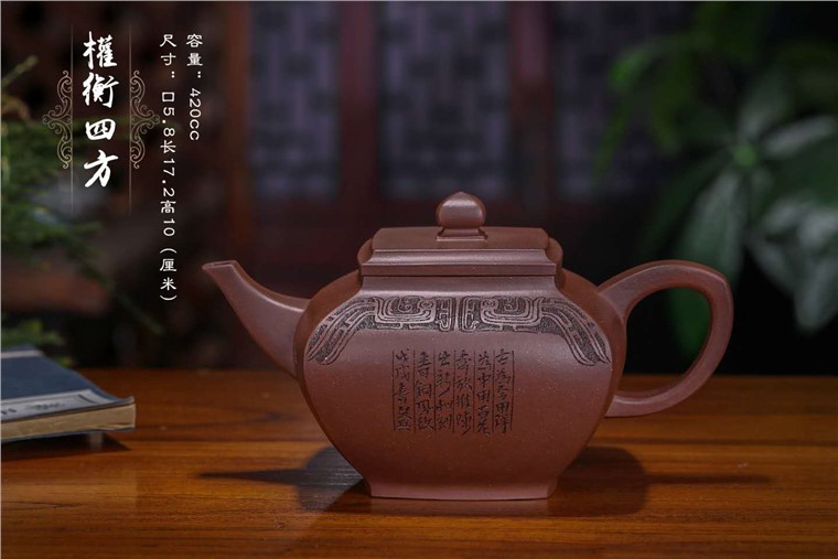 紫砂方器造型变化众多,古有“方非一式”之说,主要有长方、四方、六方、八方、随方、寓方等几种基本形状。在基本形态的造型处理中,又可以根据高中低,大中小,粗中细演变成几十种不同的方器形态。亦有人在处理时与圆器、筋囊器配合,做到上圆下方,上方下圆,口方盖圆,口圆盖方。也可以做到身圆嘴方,身方嘴圆,或是身圆把方,把圆身方等等。总之,方器造型的变化可以随着作者对形器的设计创意要求进行或圆或方的处理。