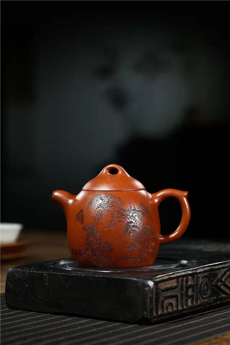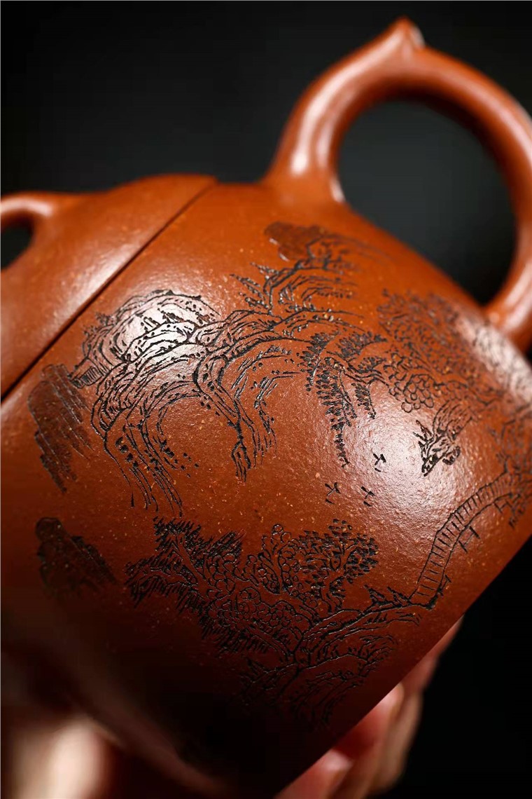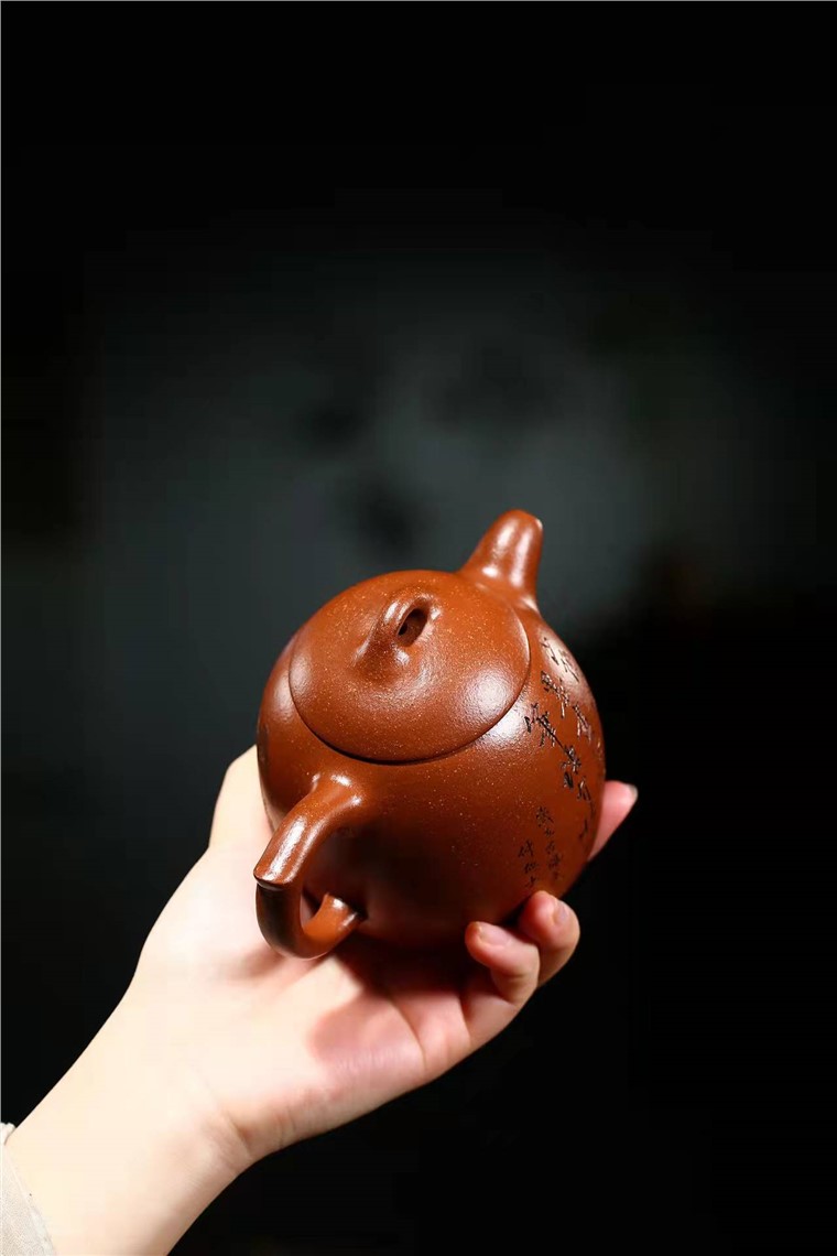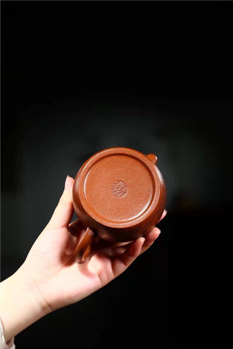 传统经典器形,被众多壶友所喜欢,整款壶极其简练、古朴,桥钮压顶,与壶身形态相应和;可以看出钮状略平,显内敛、沉稳,正切合秦权古韵。