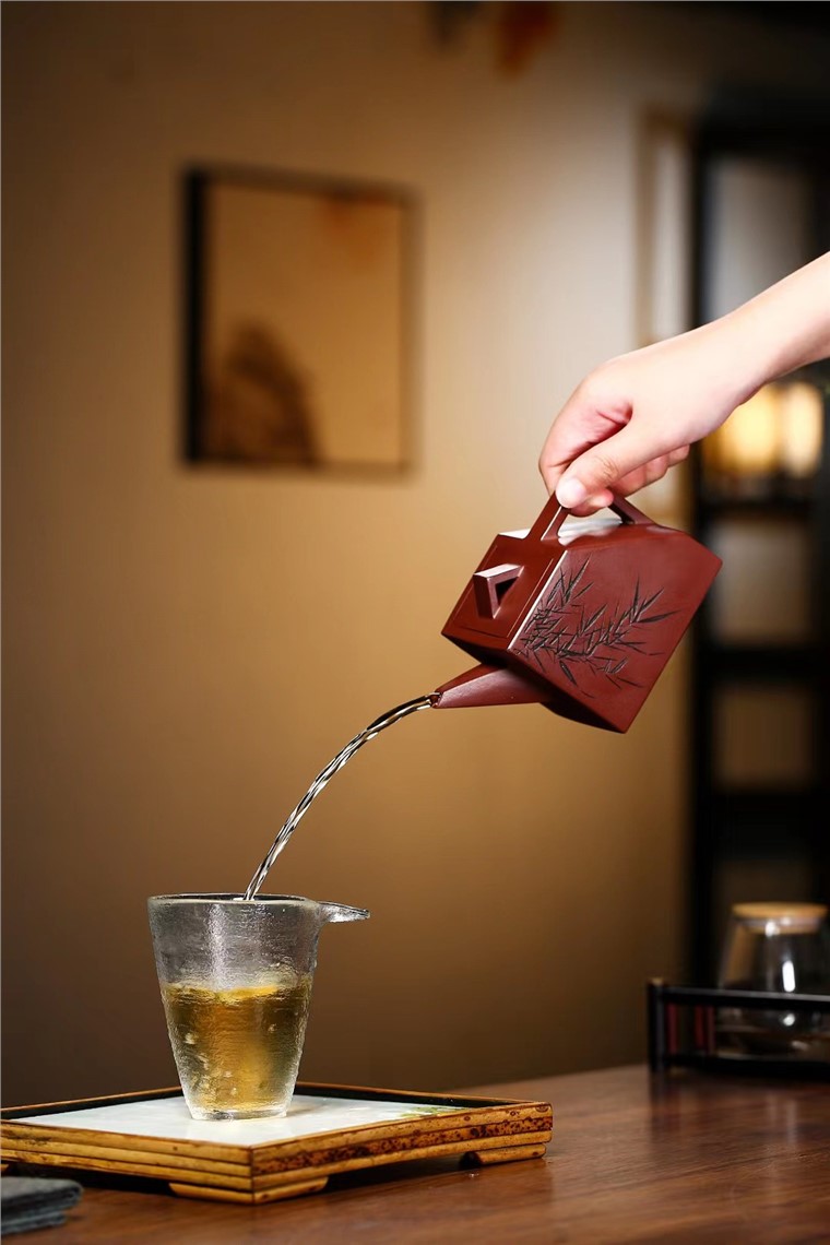 原矿紫泥,为较常见的经典紫砂泥;良者寡,而劣者多,呈紫棕色,玩家惯呼“黑紫泥”,深受玩家喜爱的泥料之一。 所制成作品质地纯净、砂质均匀、色泽润目怡人,温润细腻、不艳不媚、如小家碧玉。为江苏宜兴黄龙山矿脉所开挖出来的紫砂原矿提炼而成,因矿脉里铁质成份较高,泥料内所含颗粒较大结构疏松,使得器身明显成特殊双气孔结构,空气对流顺畅气孔对流较好,付予了宜兴紫砂茶壶,传温快、保温强,利于泡茶时保持水的温度和茶的色香味的特点。日久使用,渐露锋芒,养成变化甚大,乃淘壶人养壶正面教材之一!