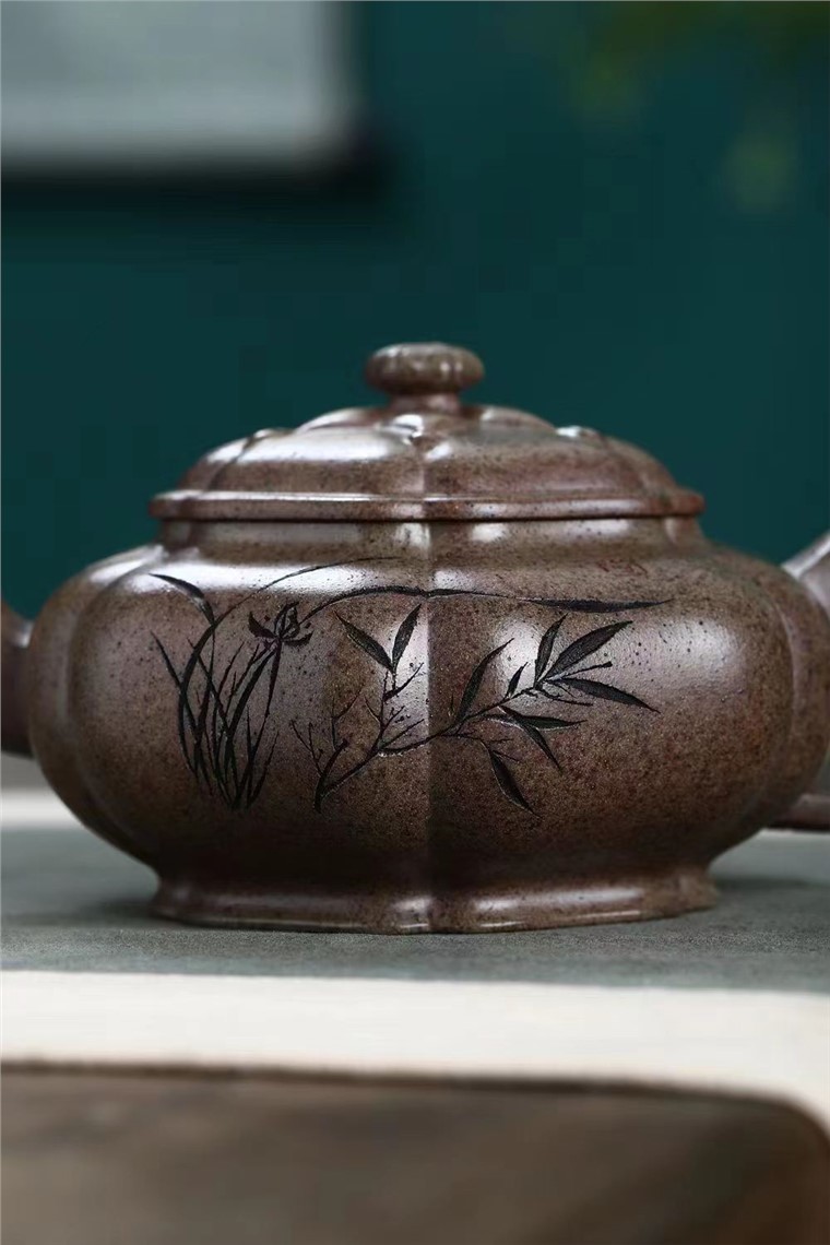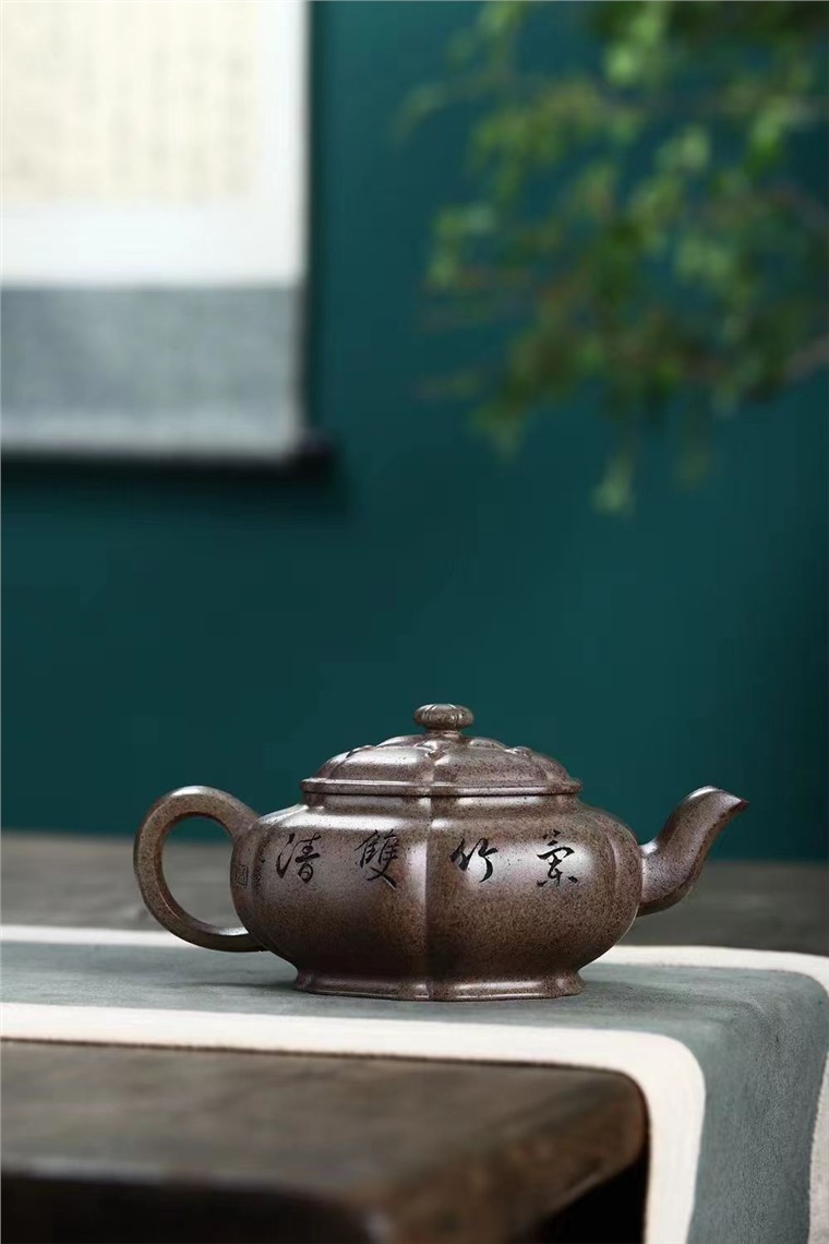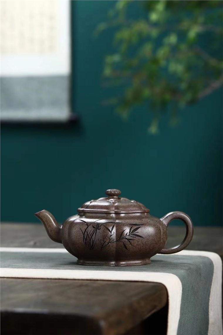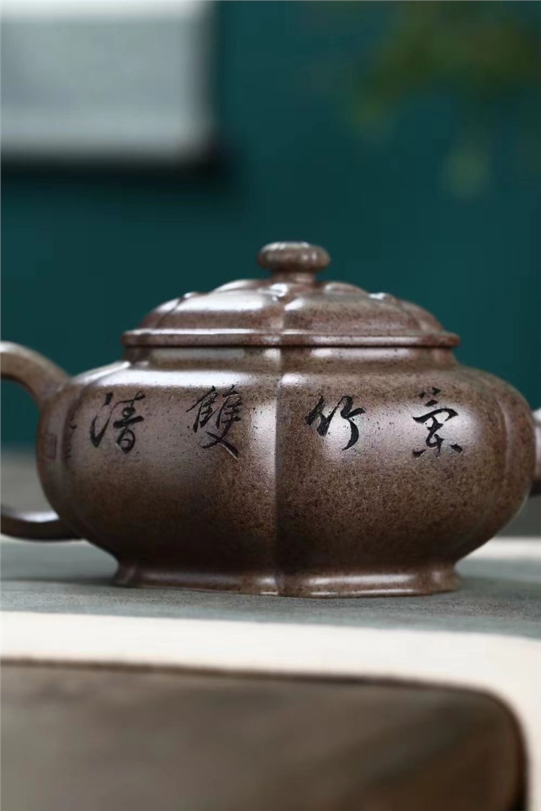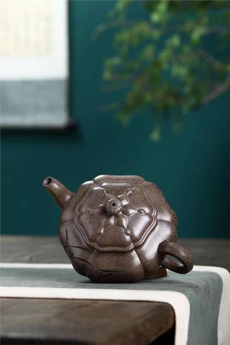 作品采用了原矿稀有清代梨皮砂泥料,容量为320cc。沈建军作为国家级工艺美术师和江苏省陶瓷艺术名人,是宜兴市非物质文化遗产项目代表性传承人,同时也是中国陶瓷艺术大师邱玉林的高徒。他在陶瓷艺术领域享有盛誉,其作品融合了传统工艺和现代审美,成为了中国陶瓷艺术的瑰宝。
