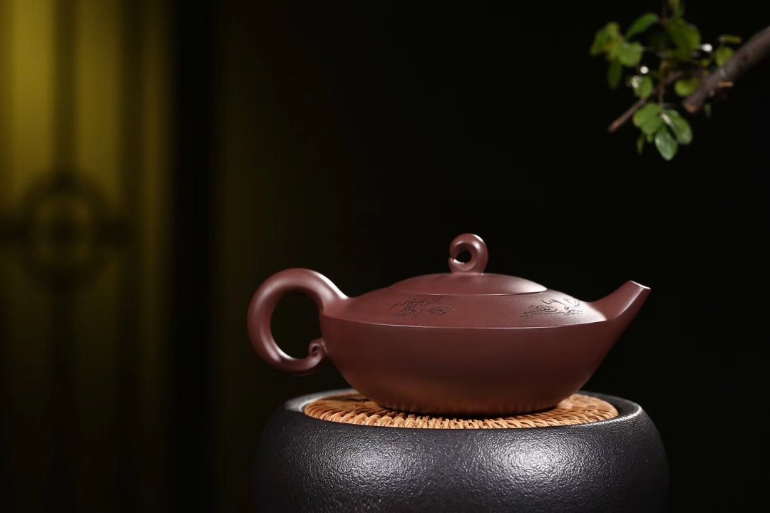 原矿紫泥,为较常见的经典紫砂泥;良者寡,而劣者多,呈紫棕色,玩家惯呼“黑紫泥”,深受玩家喜爱的泥料之一。 所制成作品质地纯净、砂质均匀、色泽润目怡人,温润细腻、不艳不媚、如小家碧玉。为江苏宜兴黄龙山矿脉所开挖出来的紫砂原矿提炼而成,因矿脉里铁质成份较高,泥料内所含颗粒较大结构疏松,使得器身明显成特殊双气孔结构,空气对流顺畅气孔对流较好,付予了宜兴紫砂茶壶,传温快、保温强,利于泡茶时保持水的温度和茶的色香味的特点。日久使用,渐露锋芒,养成变化甚大,乃淘壶人养壶正面教材之一!
